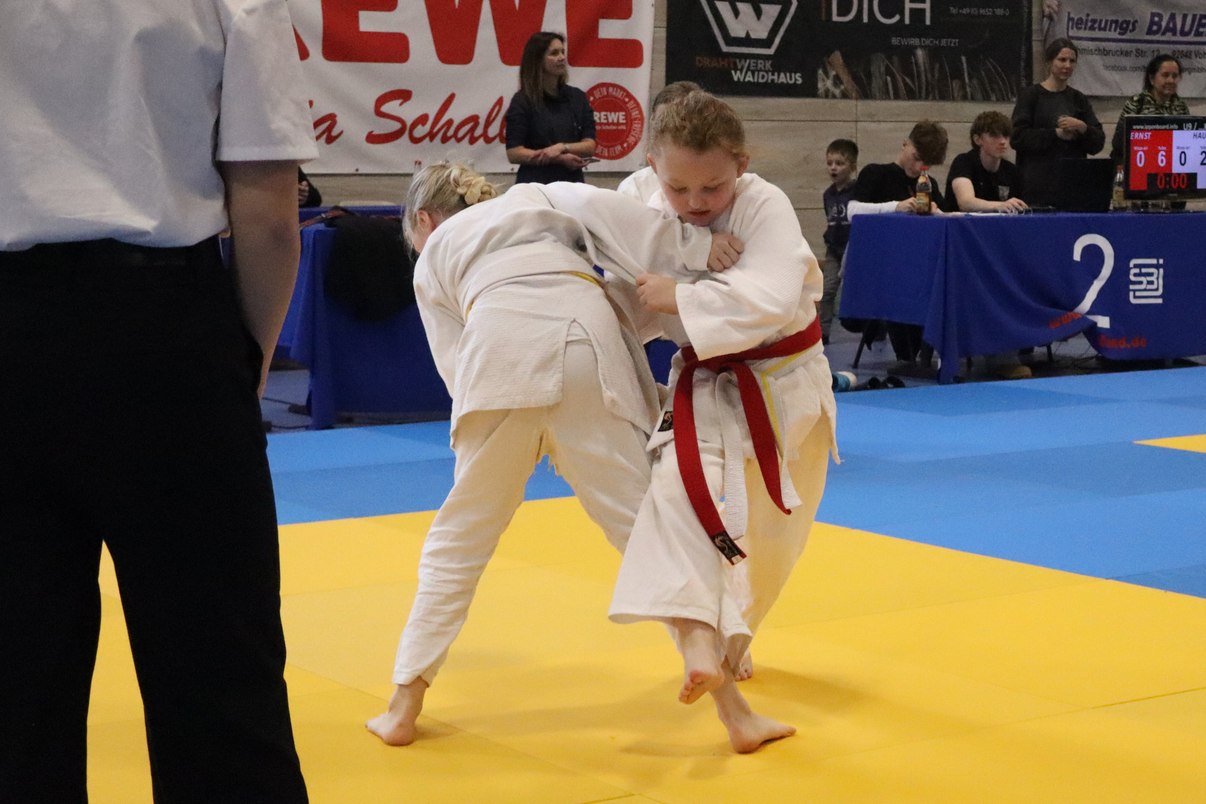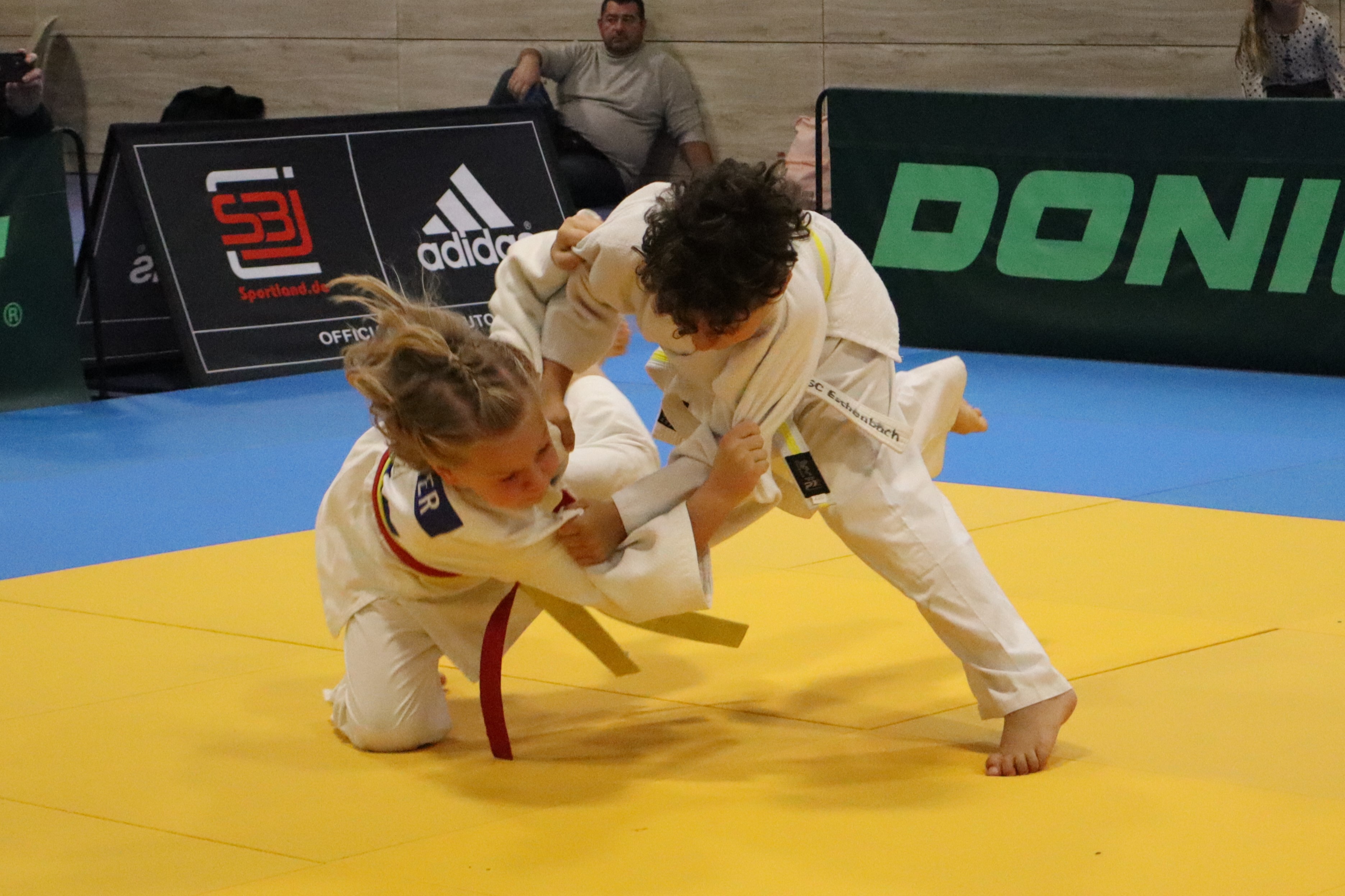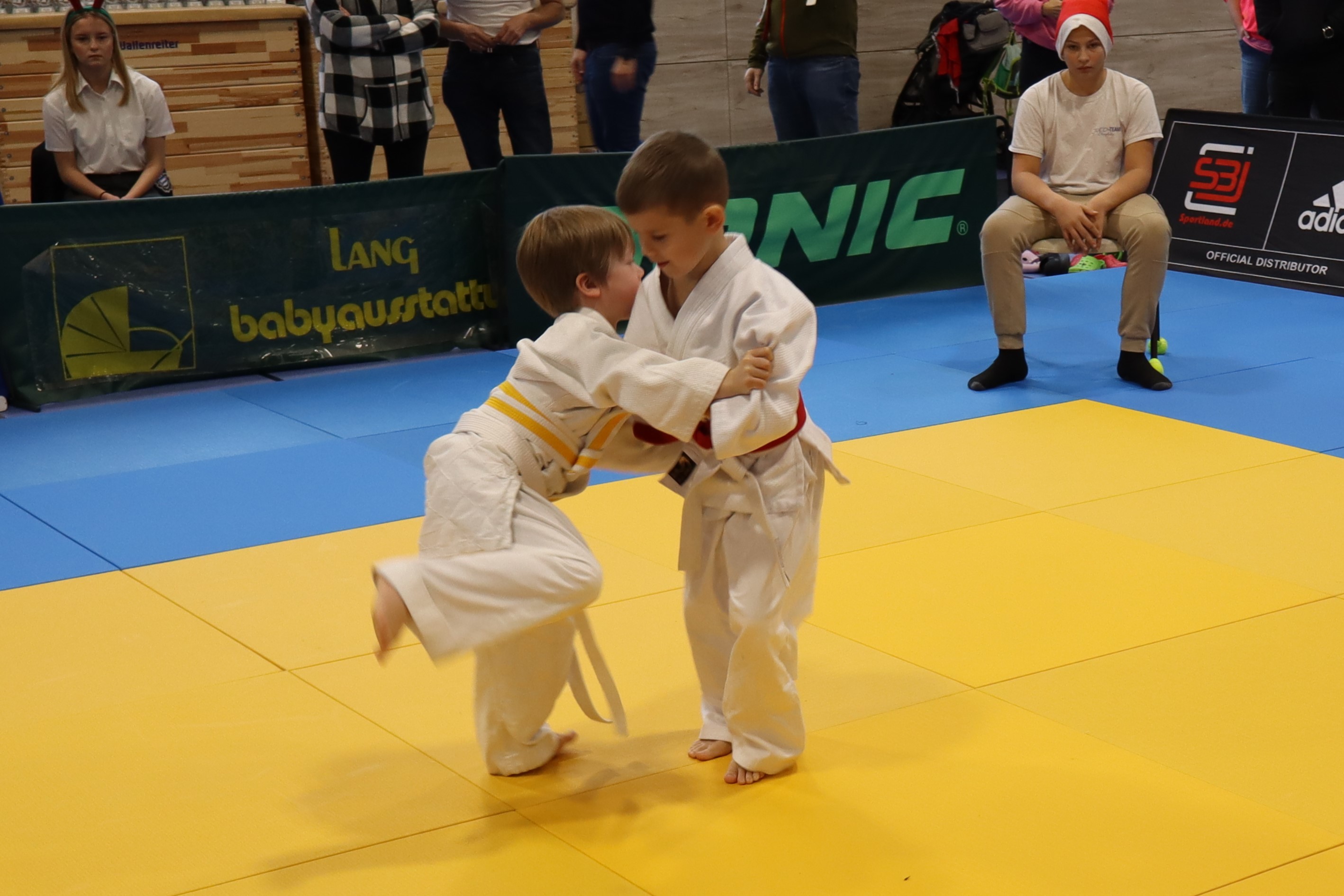 Am 07. Dezember trafen sich insgesamt 15 Nachwuchs-KämpferInnen der Eschenbacher Judoabteilung zum Nikolaus-Beginner-Meeting in Vohenstrauß. Rund 140 Kinder standen hier auf der Matte, um ihre ersten Kämpfe zu absolvieren. Die erste Herausforderung war es schon, sich zum Turnier zu trauen und sich den GegnerInnen zu stellen. Das Eschenbacher Team motivierte sich gegenseitig und alle zeigten einen tollen Zusammenhalt. Während der Kämpfe waren vom Rand laute Anfeuerungsrufe zu hören. So wuchsen auch zunächst schüchterne Judoka über sich hinaus und zeigten, was in ihnen steckt. Die Trainer (zum Anlass passend mit Nikolausmützen) und die mitgereisten Eltern hatten immer wieder Grund zum Staunen und Jubeln.