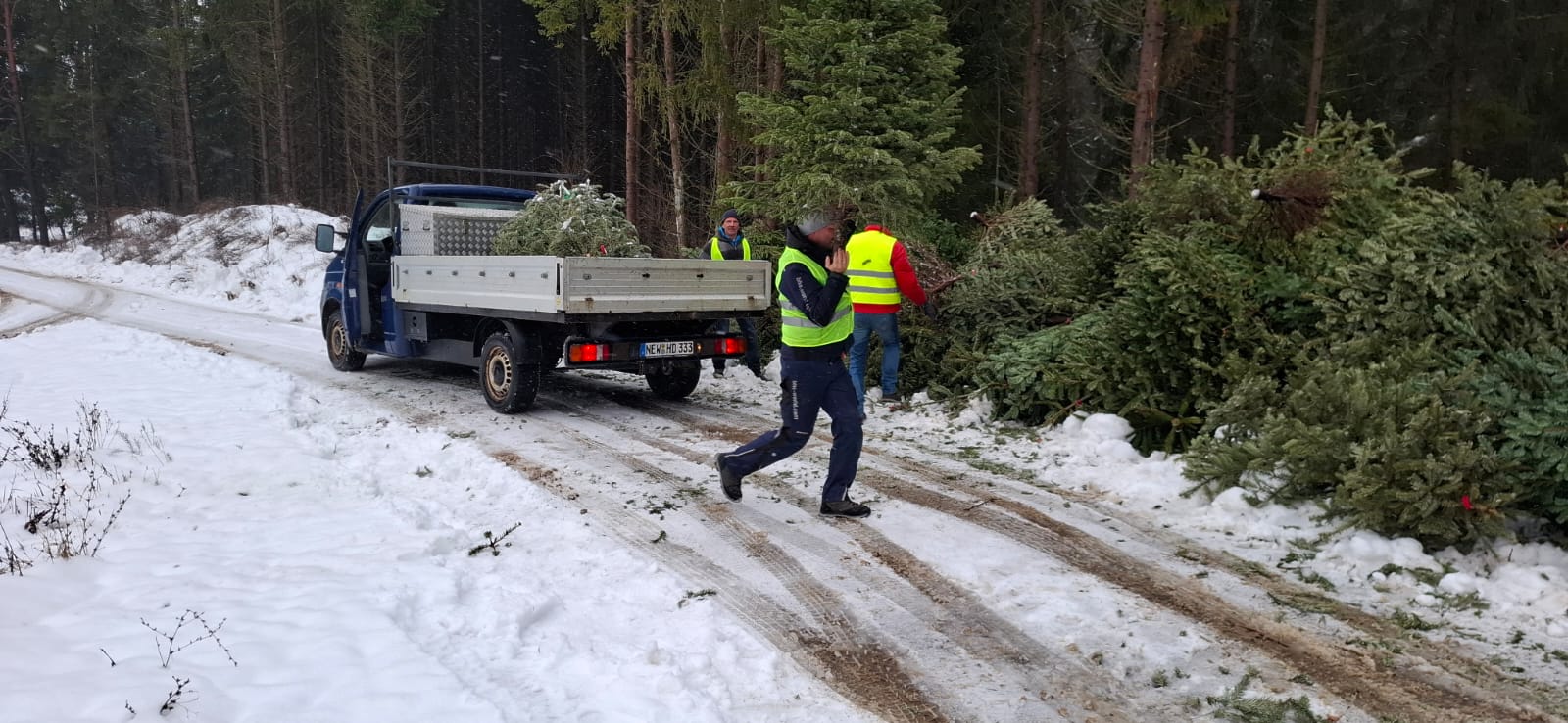 Das diesjährige Wetter erschwerte den ehrenamtlichen Helferm des SC Eschenbach ernom die Abholung der ausgedienten Christbäume. Die Fahrer mussten sehr vorsichtig ihre Fahreuge steuern während die Einsammler gegen Schnee und Nässe ankämpfen mussten. Insgesamt wurden wieder mehr als 200 Christbäume eingesammelt und am städtischen