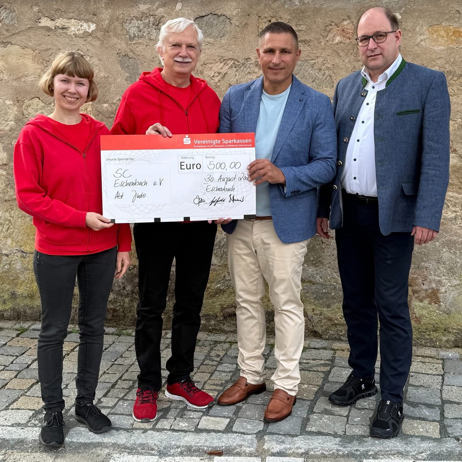 Am 30. August durfte die Judoabteilung eine besondere Spende entgegennehmen: Bürgermeister Marcus Gradl übergab dem Trainerteam bei seiner Geburtstagsfeier einen Scheck über 500 Euro. Damit dankte er den Judoka großzügig für seine eigene Judo-Zeit in Eschenbach und verwies auf die vielen positiven Erfahrungen.