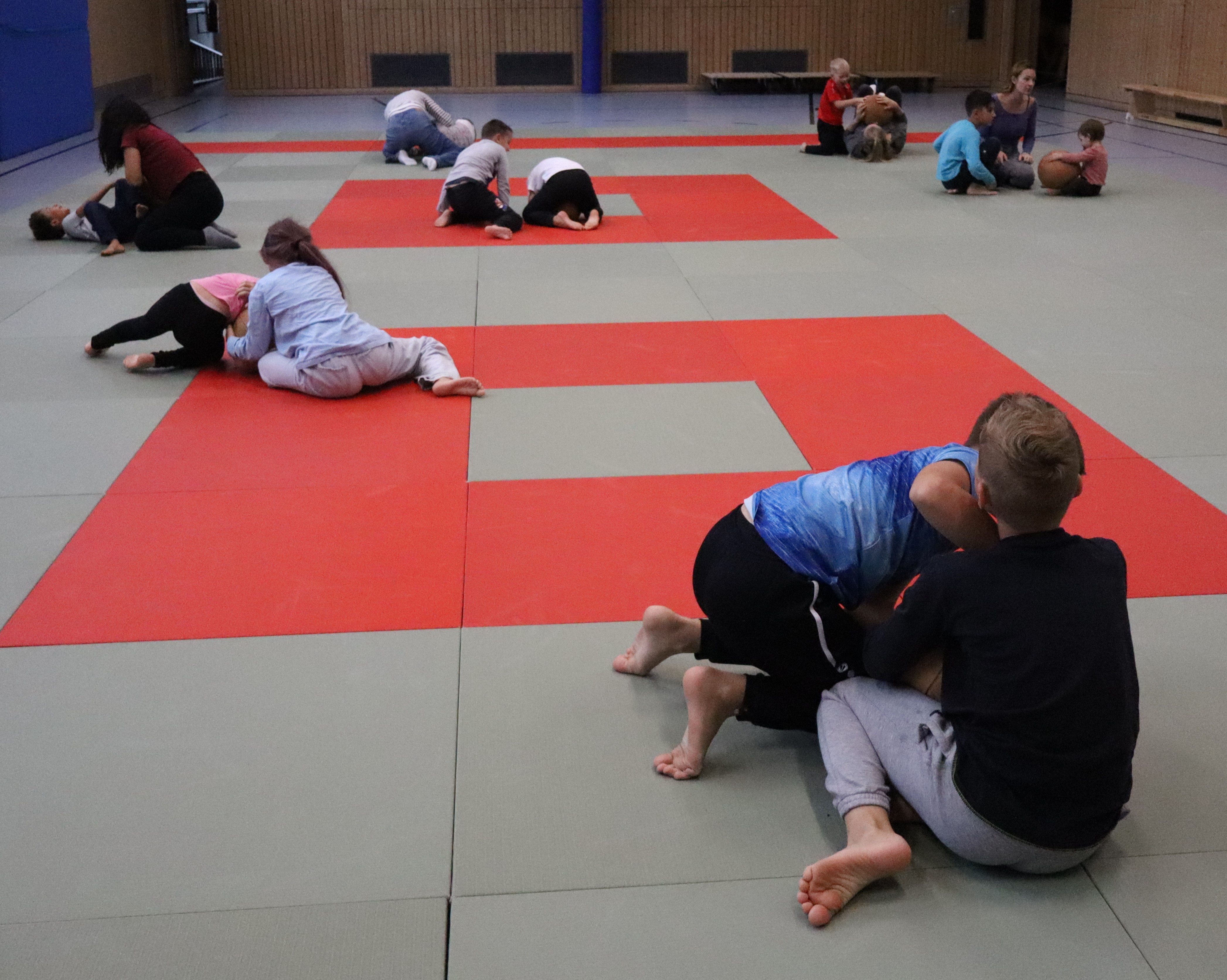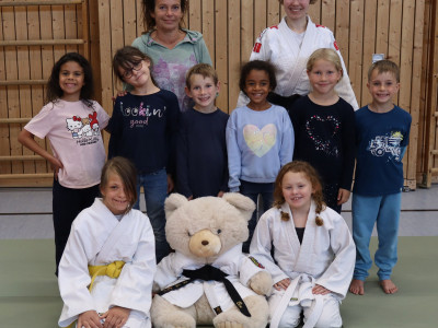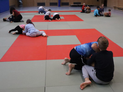 Nach spielerischen Übungen mit dem Partner oder der Partnerin lernten die Schnupper-Judoka schon ihren ersten richtigen Judo-Wurf. Dabei konnten sie die Fallübungen direkt anwenden und im Miteinander auch das gegenseitige Rücksichtnehmen auf den Anderen erproben. Dann folgte eine Haltetechnik am Boden, die in kleinen Übungskämpfen mündete. Zum Abschluss des Trainings hatten alle viel Spaß beim Kämpfen um einen Medizinball und konnten sich in Budo-Duellen mit Schieben und Ziehen miteinander messen. Am Ende waren alle ausgepowert, aber gut gelaunt. Viele waren sich einig, dass sie wieder ins Judotraining kommen wollten.