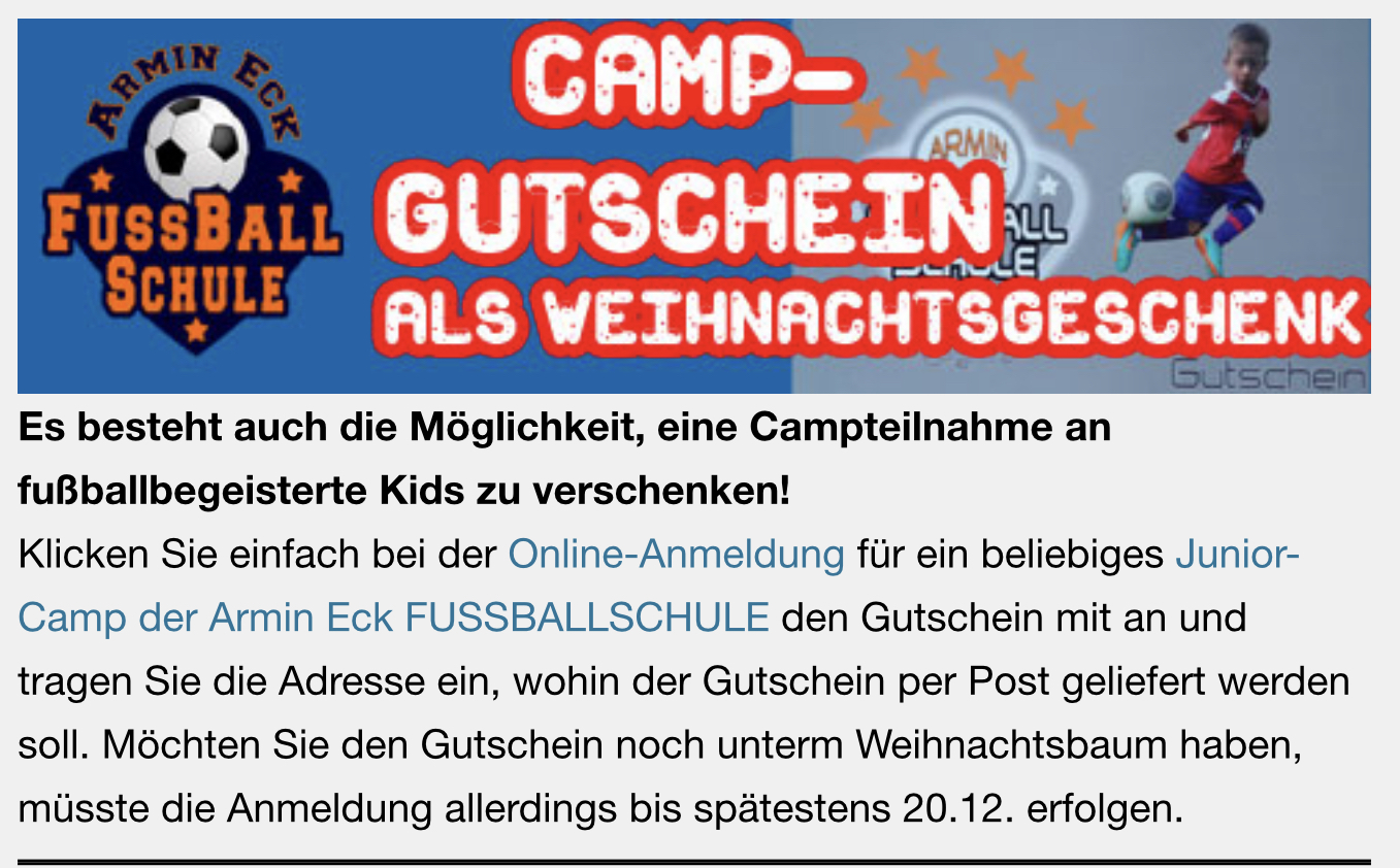 Armin Eck, der ehemalige Profi des FC Bayern München und Hamburger SV, wird dabei den Nachwuchs auch persönlich trainieren, um ihnen so seine Erfahrungen und Tipps mit auf den Weg zu geben.