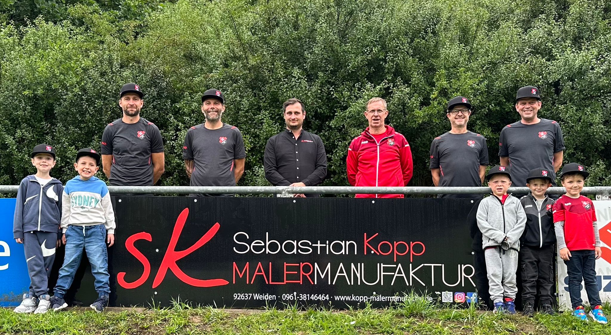 Pünktlich zur Saison-Abschlussfeier überraschte die Sebastian Kopp Malermanufaktur aus Weiden unsere komplette Fußball-G-Jugend samt Trainer-Quartett mit stylischen Premium SCE Snapback Caps.